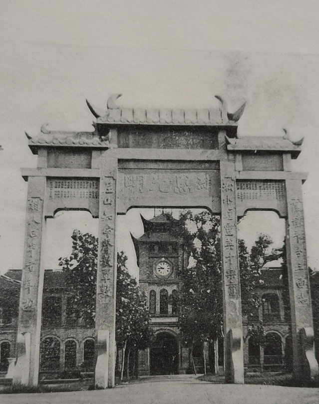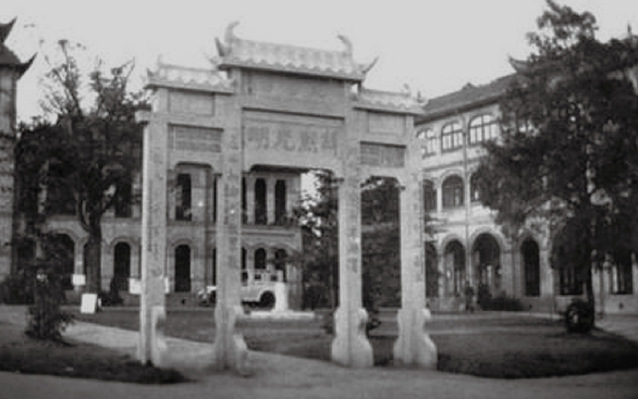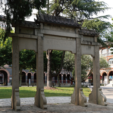 In commemoration of the 50th anniversary of St. John’s University, local gentry in today’s Caojiadu erected a traditional Chinese-style memorial archway in front of the Grand Lawn of Schereschewsky Hall in 1929. Its square stone columns were connected with a banner and covered with a Chinese roof, making the overall shape quaint as well as exquisite and chic.
