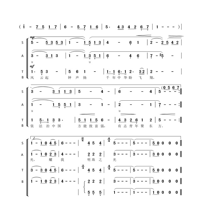 莫忘,莫忘,莫忘,莫忘,祖國(guó)未來(lái)?yè)?dān)肩上,耀我明珠之光。