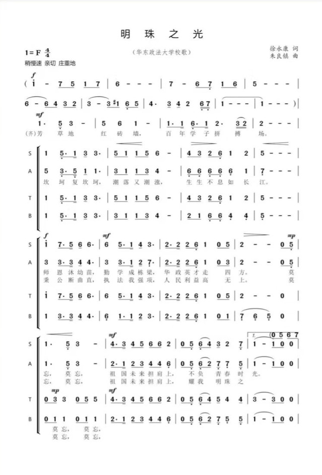 第六十九條 學校的校歌是《明珠之光》(附后)。